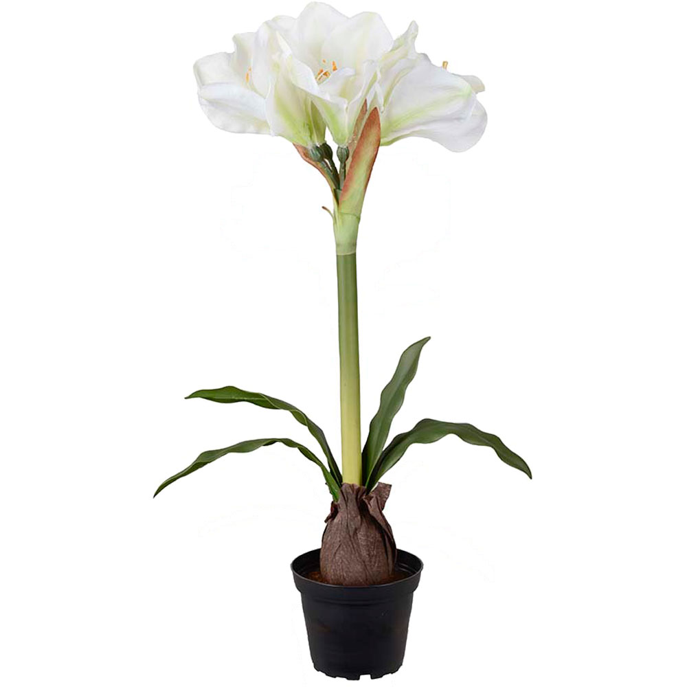 Vit Amaryllis från Mr Plant - Vackert välgjord och naturtrogen. Sitter monterad i svart plastkruka (innerkruka), Ytterkruka ingår ej.