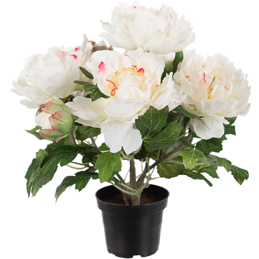 Konstväxt, vit pion i vackert utförande från Mr.Plant. Blomman är ingjuten i plastkruka, ytterkruka ingår ej.